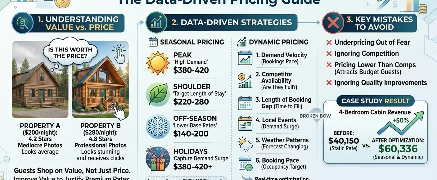 Pricing is the single most important factor in vacation rental revenue. Pricing 10% too low costs you $8,000-15,000 annually. Pricing 10% too high costs you bookings. Getting pricing right is complex, but it’s also where big money gets made. This guide covers the data-driven approach to vacation rental pricing—the same approach we use to optimize […]
